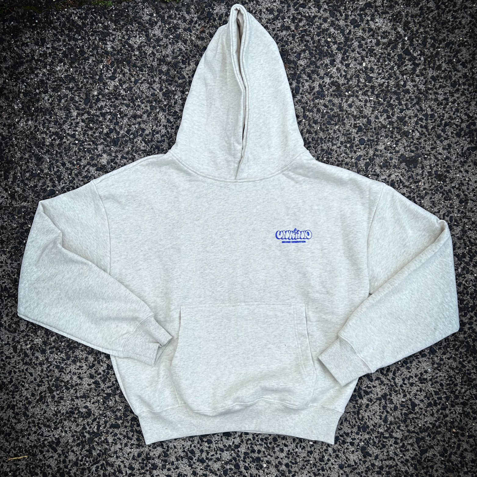 A luxury 100% cotton oversized hood, with ribbed hem and cuffs. The hoodie is finished with our NEW BLUE puff print UNWIND graphic front and back. 450GSM.